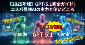 【2025年版】GPT-5.1完全ガイド|コスパ最強AIの実力と使いどころ 読了時間: 約6分 「AIを使いたいけど、どれを選べばいいかわからない」「コストを抑えたい」という方は多いのではないでしょうか。 そんな方におすすめなのがGPT-5.1で...