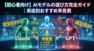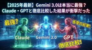 【2025年最新】Gemini 3.0は本当に最強?Claude・GPTと徹底比較した結果が衝撃だった 読了時間: 約9分 最近X(旧Twitter)やテック系ニュースで「Gemini 3.0がすごい」「AIの覇権がGoogleに移った」なんて声をよく見かけるようになりました。 しかし、本当...