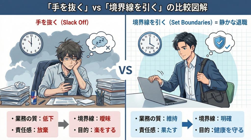 「静かな退職」に対して、「それは単なるサボりではないか」という批判があります。しかし、この2つは根本的に異なります。