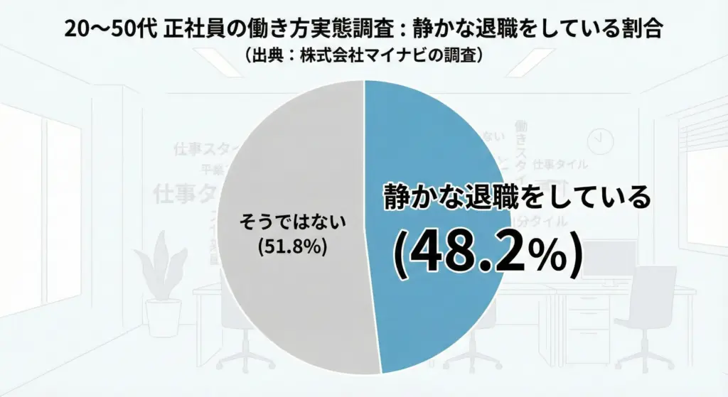 さらに株式会社マイナビの調査では、20〜50代の正社員の48.2%が「静かな退職をしている」と回答しています。
