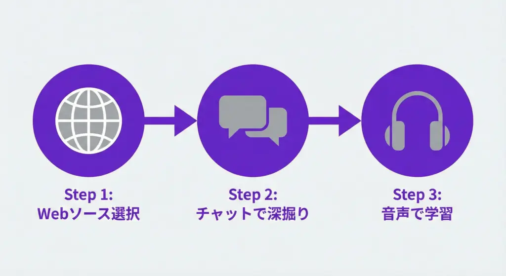 実践:NotebookLMでリサーチする3ステップ