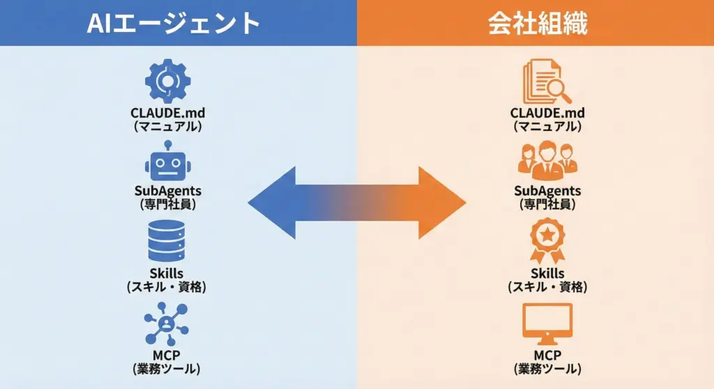 AIエージェントの話題を見ていると、「CLAUDE.md」「SubAgents」「Skills」「MCP」といった用語が飛び交っています。