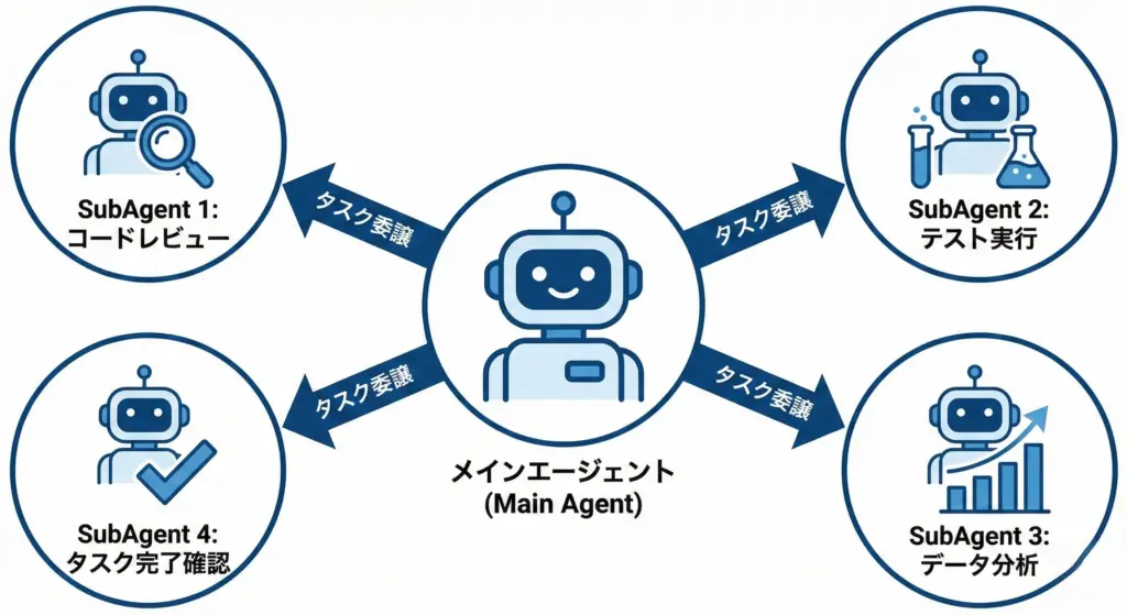 SubAgentsは、Claude Codeの中で動く「専門担当者」です。