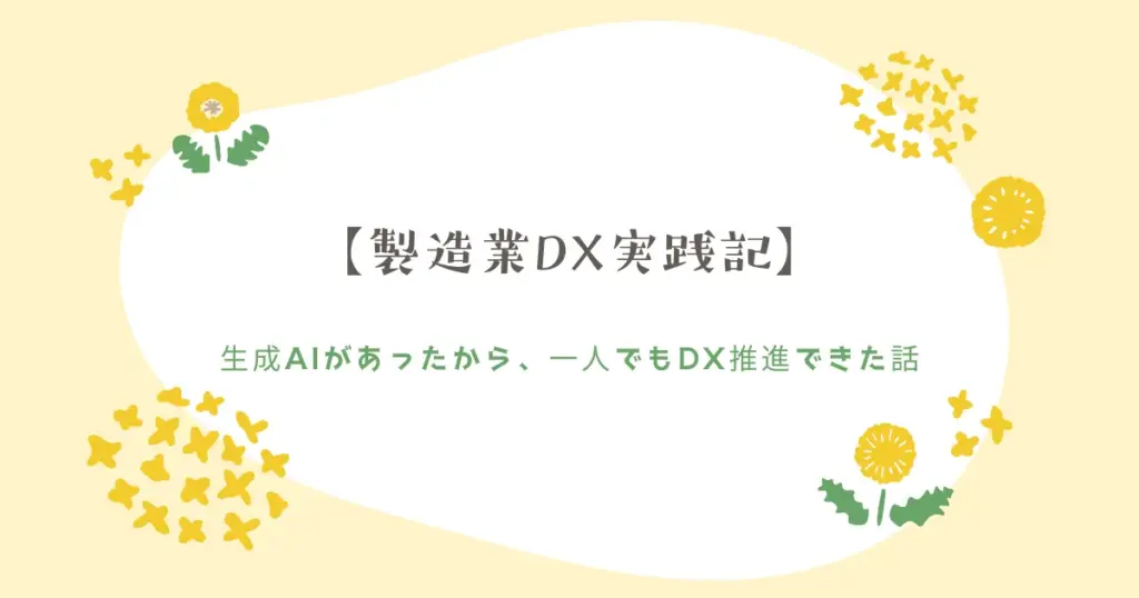 「一人で何でもやってください」 そう言われたのが、2024年1月。従業員12人のアルミダイカスト製造業に転職した時です。 IT環境はほぼゼロ。私一人でDX推進を担当することになりました。 普通なら「無理だろ...」って思うところですよね。 でも私は、「い... -