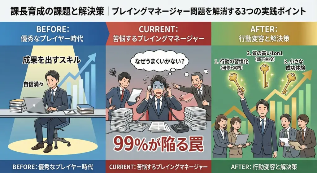 課長育成の課題と解決策|プレイングマネージャー問題を解消する3つの実践ポイント